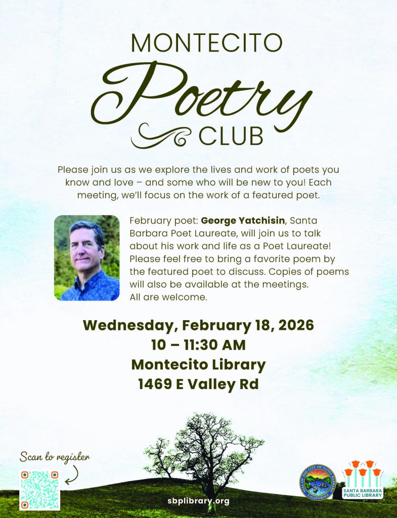 February poet: George Yatchisin, Santa Barbara Poet Laureate, will join us to talk about his work and life as a Poet Laureate!